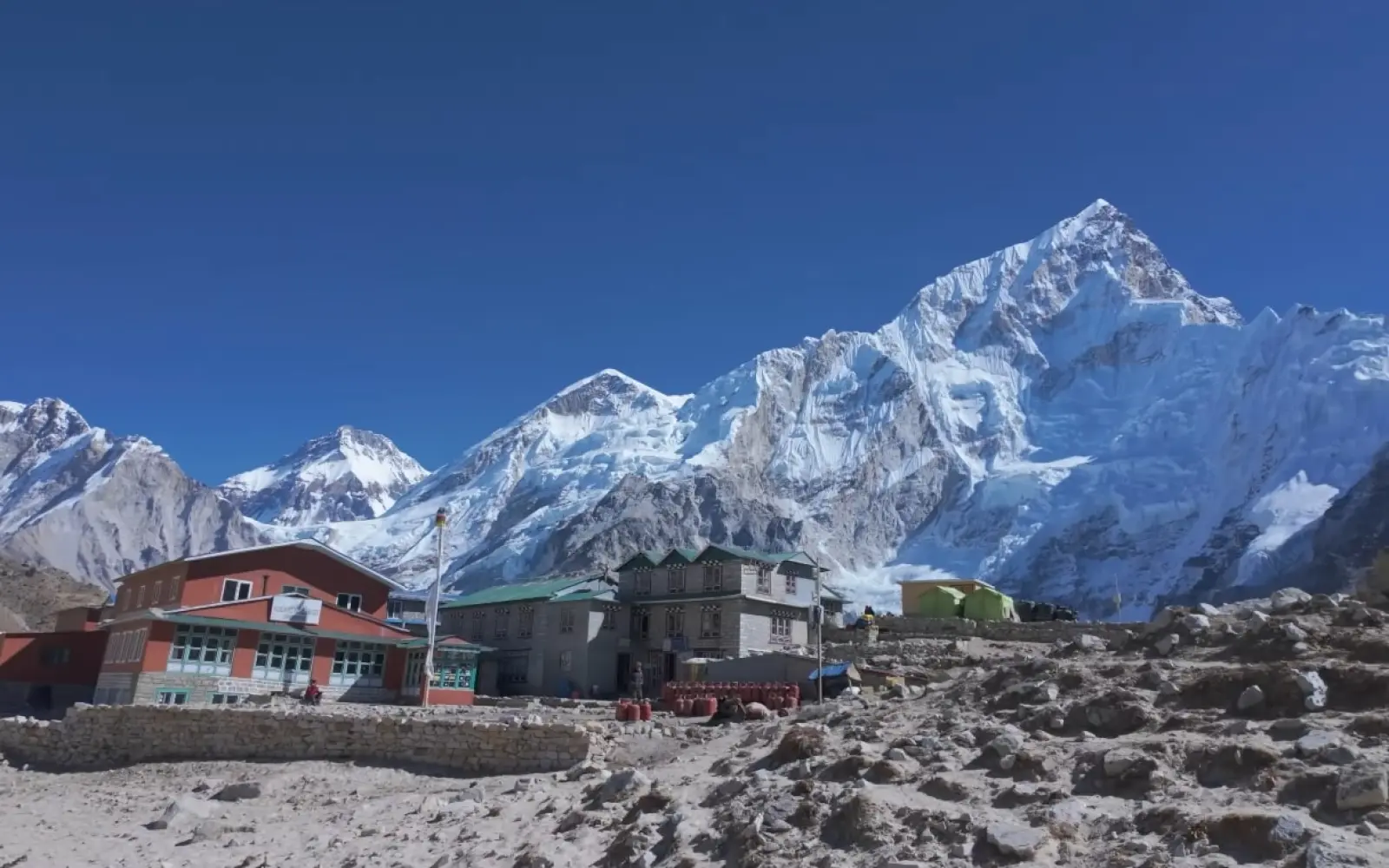 Gorak Shep is essentially a few tea houses in a desolate glacial valley. In winter, it's surreal—a tiny outpost of human habitation in an utterly hostile environment. The tea houses here are heated primarily in the dining rooms; sleeping quarters are cold. This is where your sleeping system really matters.