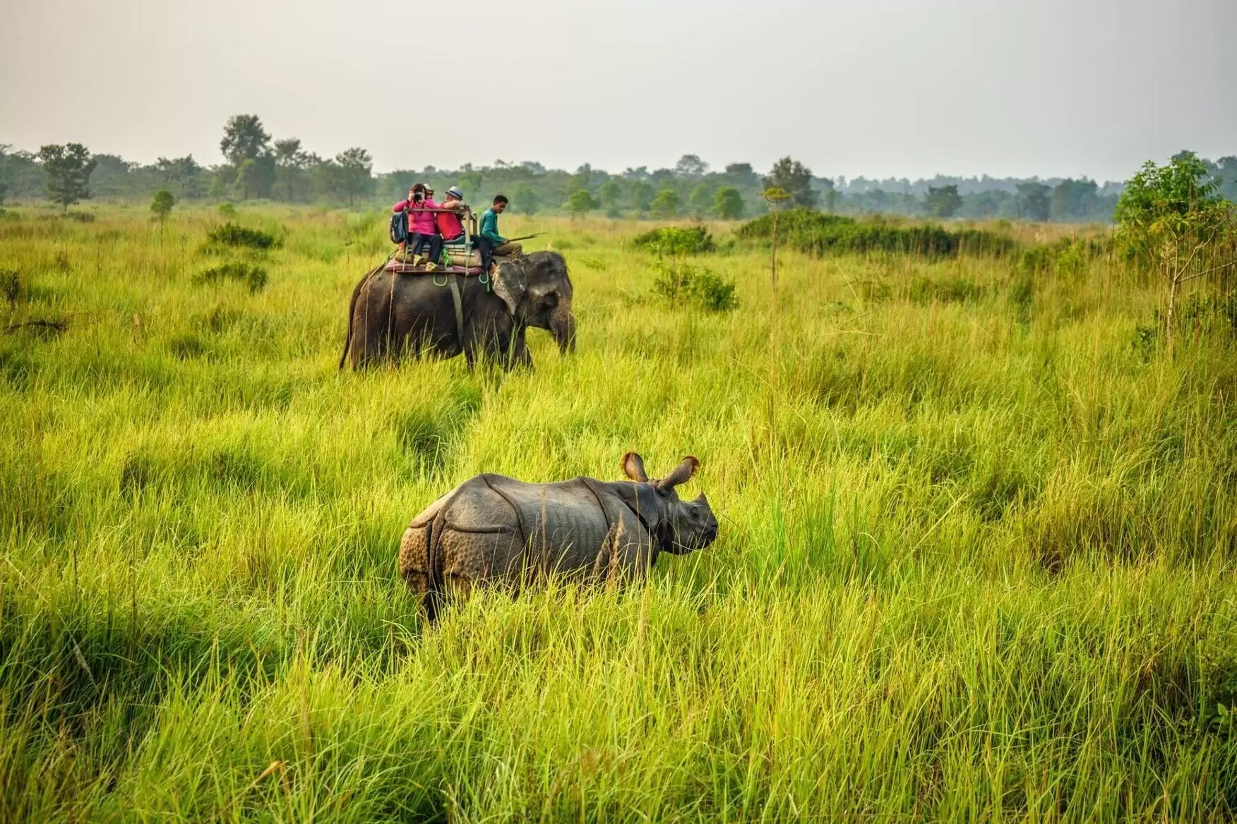 Wildlife sightings may include Bengal tigers, one-horned rhinoceros, Asian elephants, deer, crocodiles, and a variety of bird species.