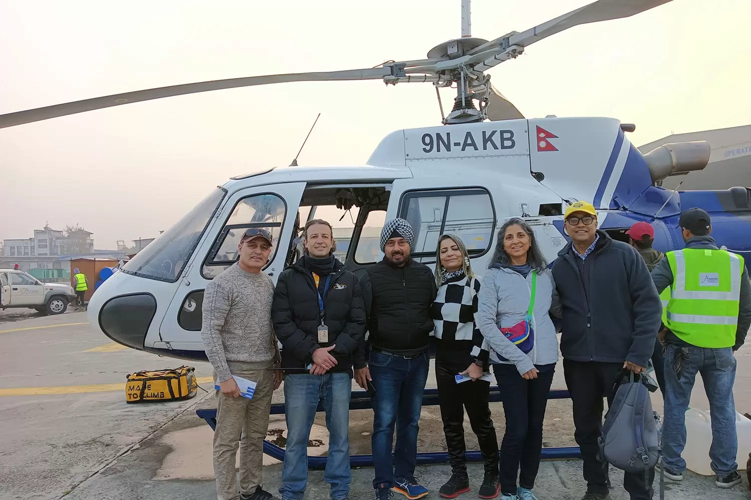 With more than 5 passengers, for above 6 to 10, chartering another helicopter, but with 5-6 on the same chopper. The pilot lands at Pheriche valley, and shuttles the passengers to and from view point the base of Kalapathar hill.