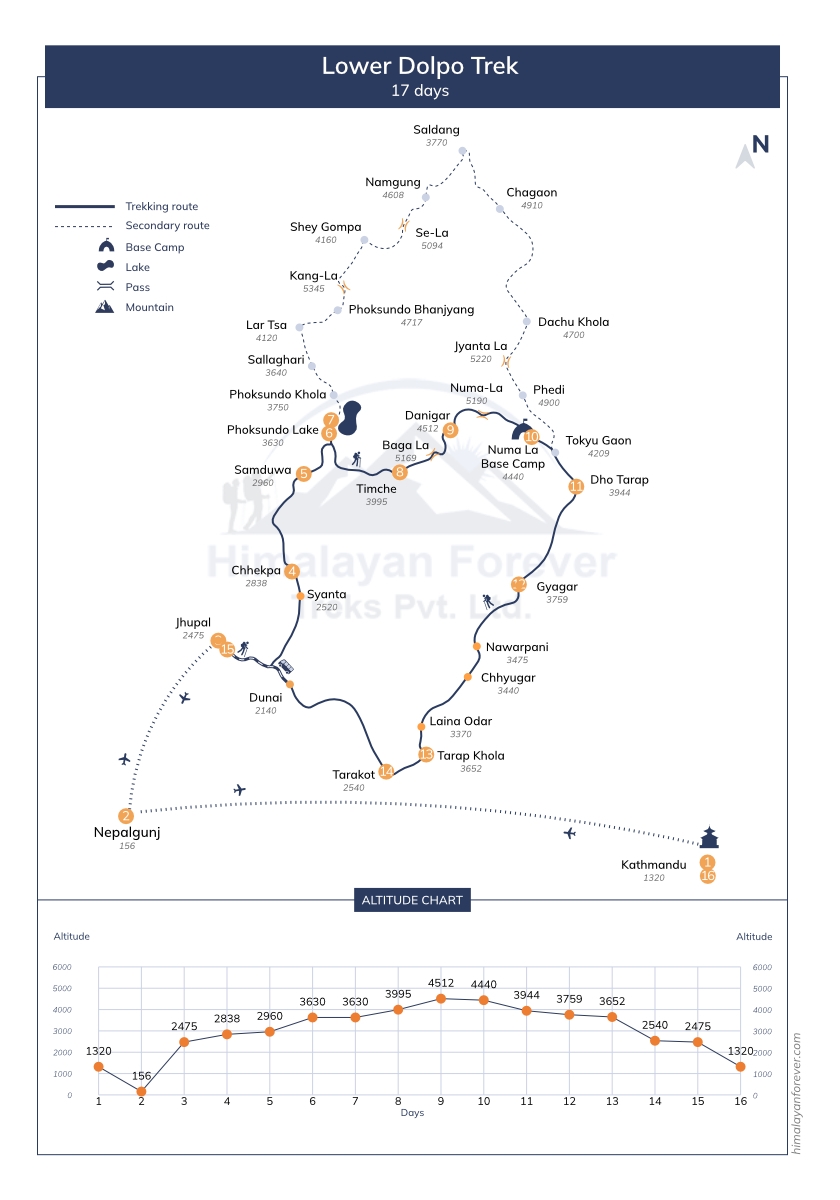 After a memorable night around Phoksundo Lake and lovely village of Ringmo, you will be heading for return journey on an alternative exciting route. The trial leads towards highBaga-La and Numa-La Passes which reaches to the other end of Dolpo.